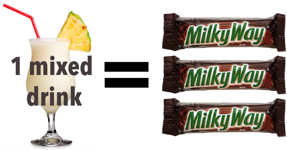 #7 | Mixed Drinks. Alcohol is pure sugar. But beer and wine have way less sugar than mixed drinks you’d get at a bar. A 4oz Pina Colada has 28g of added sugar, equal to about 3 Fun Sized Milky Ways. Avoid mixed drinks and stick to one glass of beer or wine instead.