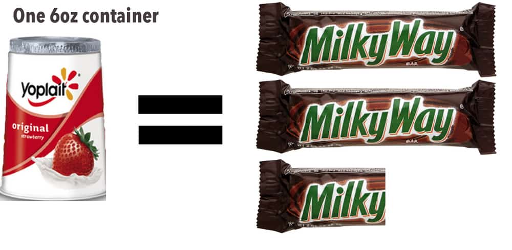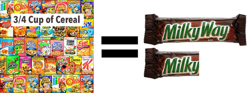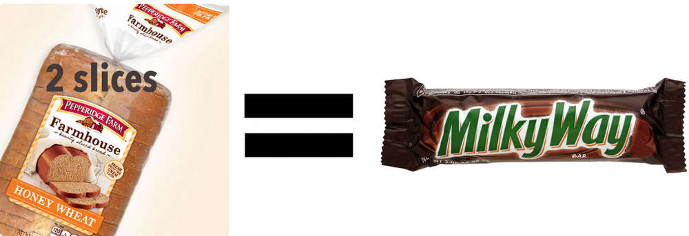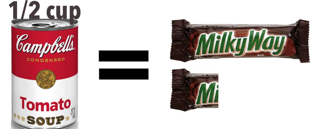 Everyone knows that you probably shouldn’t be having 4-6 Fun Size Milky Way Bars a day, but did you know you could be getting the equivalent of that by having a Grilled Cheese Sandwich on Wheat Bread with Ketchup and a small container of Strawberry Yogurt on the side?