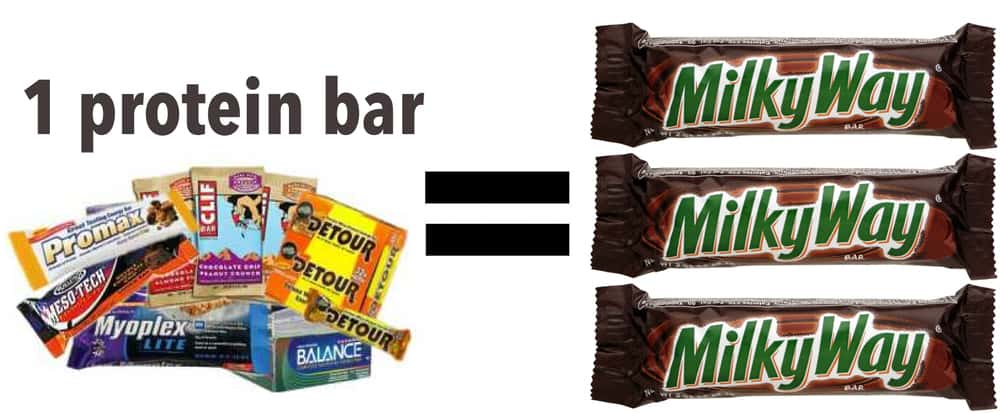 #5 | Protein Bars. Usually marketed as a great “post workout snack,” most protein bars are super processed and have tons of sugar added to them. 1 bar can have anywhere between 25-35g of sugar! That’s about 3 Fun Sized Milky Ways. Instead of a protein bar, try Greek Yogurt with fruit, nut butters on sprouted wheat bread, or make a smoothie using a low sugar organic protein powder like Amazing Meal or SunWarrior.